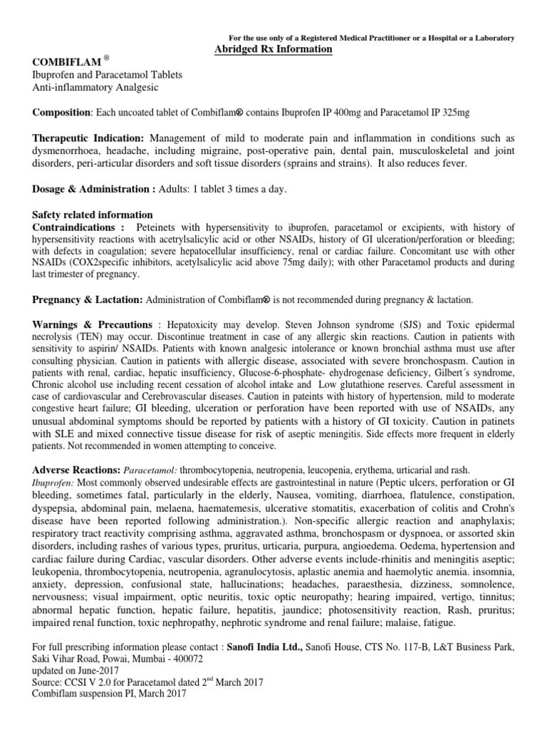 Combiflam Composition : It contains ibuprofen and paracetamol as active ingredients.