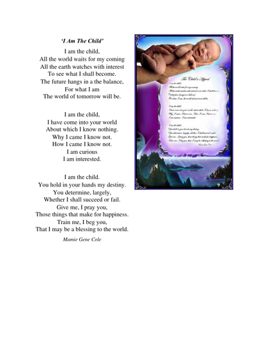 I Am A Child Poem : This poem is inspired for all occasions such as birthdays, naming, any ceremonies of baby shower or other holidays.